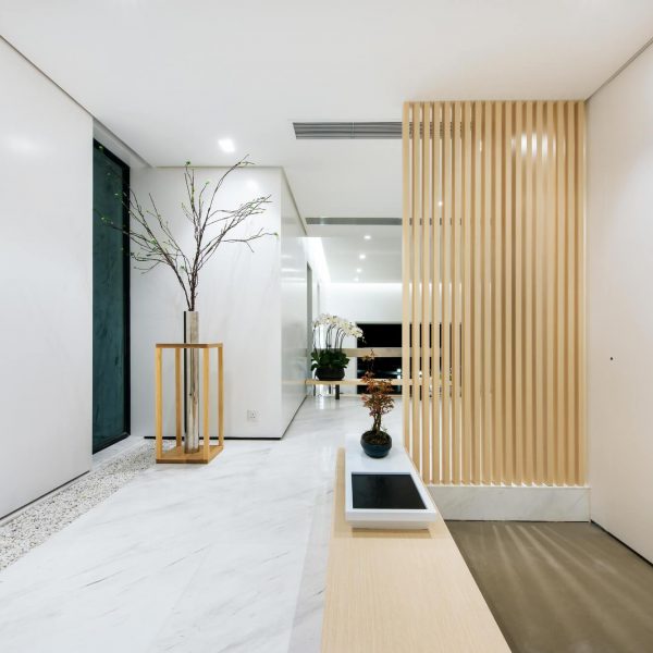 單位客飯廳較長,令陽光未能穿透整個空間,設計師特別利用燈槽,一方面平衡光線,另一方面營造簡潔風格。為免單位過分單調,設計師透過運用冷色作為主調,並配上強烈色彩的設計師傢俱,貫設出時尚型格的一面。